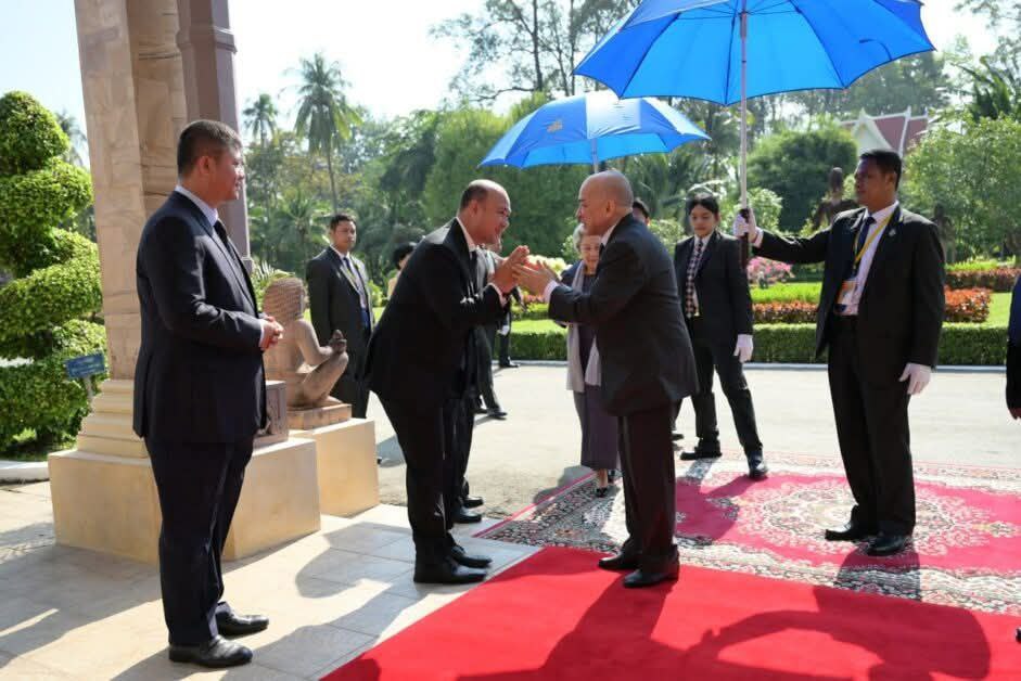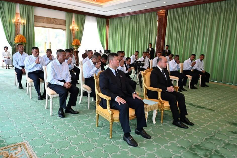 ព្រះករុណាជាអម្ចាស់ជីវិតលើត្បូង ព្រះបាទសម្តេចព្រះបរមនាថ នរោត្តម សីហមុនី ព្រះមហាក្សត្រនៃព្រះរាជាណាចក្រកម្ពុជា និងសម្តេចព្រះមហាក្សត្រី នរោត្តម មុនិនាថ សីហនុ ព្រះវររាជមាតាជាតិខ្មែរ ក្នុងសេរីភាព សេចក្តីថ្លៃថ្នូរ និងសុភមង្គល ជាទីគោរពសក្ការៈដ៏ខ្ពង់ខ្ពស់បំផុត ព្រះអង្គទាំងទ្វេសព្វព្រះរាជហឬទ័យប្រោសព្រះរាជទានកងទ័ពទាំង ១៨រូប ដែលបាននិវត្តន៍មកកាន់មាតុប្រទេសវិញ ប្រកបដោយសុខសុវត្ថិភាពខ្ពស់ ក្រោយពីស្ថិតក្នុងការឃុំគ្រងរបស់ភាគីថៃអស់រយៈពេល ១៥៥ថ្ងៃ ចូលក្រាបថ្វាយបង្គំគាល់ នៅព្រះរាជដំណាក់សិរីមង្គល ព្រះបរមរាជវាំង វេលាព្រឹក ថ្ងៃទី០១ ខែមករា ឆ្នាំ២០២៦។