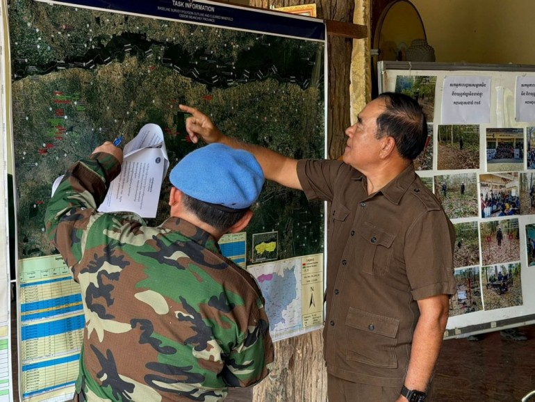 ខេត្តឧត្តរមានជ័យ៖ នៅថ្ងៃទី០៤ ខែមេសា ឆ្នាំ២០២៦ ឯកឧត្តមបណ្ឌិត លី ធុជ ទេសរដ្ឋមន្ត្រី អនុប្រធានទី១ អាជ្ញាធរមីន បានអញ្ជើញចុះពិនិត្យសកម្មភាពបោសសម្អាតមីនរបស់មជ្ឈមណ្ឌលជាតិគ្រប់គ្រងកងកម្លាំងរក្សាសន្តិភាព បោសសម្អាតមីន និងកាកសំណល់សង្គ្រាម (NPMEC) ដែលគាំទ្រគម្រោងដោយមូលនិធិរបស់រាជរដ្ឋាភិបាលកម្ពុជា និងជួបសំណេះសំណាលជាមួយបងប្អូនប្រជាពលរដ្ឋ ស្ថិតក្នុងស្រុកអង្លង់វែង និងក្រុងសំរោង ខេត្តឧត្តរមានជ័យ។