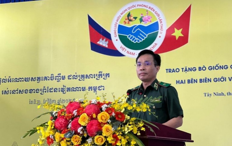 មានប្រសាសន៍នៅក្នុងអង្គពិធី លោក ឧត្តមសេនីយ៍ត្រី វូ គ្វឹកអឹង អនុប្រធាននយោបាយកងទ័ពការពារព្រំដែនប្រទេសវៀតណាម បញ្ជាក់ថាអំណោយជាពូជគោចិញ្ចឹមពីវីរៈការពារព្រំដែនកងទ័ពវៀតណាមជូនដល់ប្រជាពលរដ្ឋទាំងពីរប្រទេសកម្ពុជាវៀតណាមដែលជួបការលំបាកនាពេលនេះ សរុប ចំនួន២០ក្បាល ដោយគិតជាតម្លៃគោមួយក្បាលមានតម្លៃ ២០លានដុង (ប្រាក់វៀតណាម) ស្មើនឹងជាង៣លានរៀល (ប្រាក់កម្ពុជា) ។