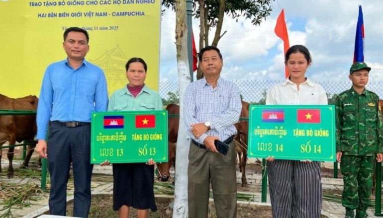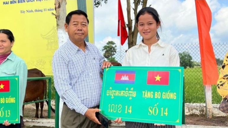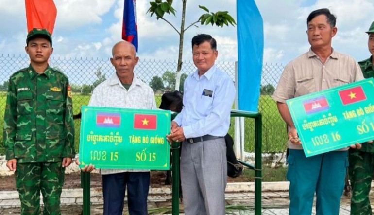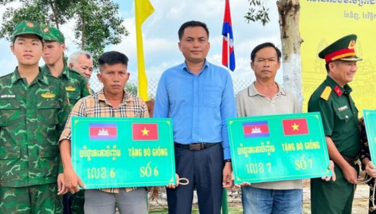 ឆ្លៀតក្នុងឱកាសនោះ លោក ជា ហ៊ន អភិបាលស្រុកស្វាយទាប ខេត្តស្វាយរៀង នៃព្រះរាជាណាចក្រកម្ពុជាបានមានប្រសាសន៍ប្រាប់អ្នកយកព័ត៌មានថា ប្រជាពលរដ្ឋនៅឃុំមនោរម្យ ស្រុកស្វាយទាបខេត្តស្វាយរៀង ដែលជួបការលំបាកចំនួន ១០ គ្រួសារ បានមកទទួលពូជគោចិញ្ចឹមពីវីរៈការពារព្រំដែនកងទ័ពវៀតណាម ដែលពិធីសប្បុរសធម៌និងដោយមានអត្ថន័យនេះប្រារព្ធធ្វើឡើងក្នុងន័យអបអរសាទរនៃជំនួបប្រាស្រ័យមិត្តភាពការពារព្រំដែនកម្ពុជាវៀតណាមលើកទី ២ ដែលប្រារព្ធធ្វើឡើងនៅលើទឹកដីខេត្តស្វាយរៀងប្រទេសកម្ពុជា នៅខេត្តទៅតៃនិញ ប្រទេសវៀតណាម។