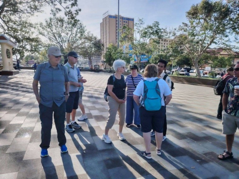ភ្ញៀវទេសចរស្ទើរតែទាំងអស់ គ្រាន់តែចុះពីកប៉ាល់ភ្លាម គឺសំដៅមកវេទិកា ៧មករា ដើម្បីចូលរួមឧបត្ថម្ភជាសម្ភារថវិកា គ្រឿងឧបភោគបរិភោគ ជូនដល់វីរៈកងទ័ពកម្ពុជាយើង និង ប្រជាពលរដ្ឋភៀសសឹក ។